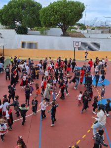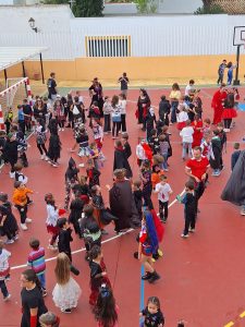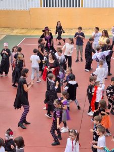 Además, el viernes 31 de octubre, vinimos todos disfrazados, hicimos desfiles de disfraces y jugamos todos al juego de “congelados” al ritmo de la música.