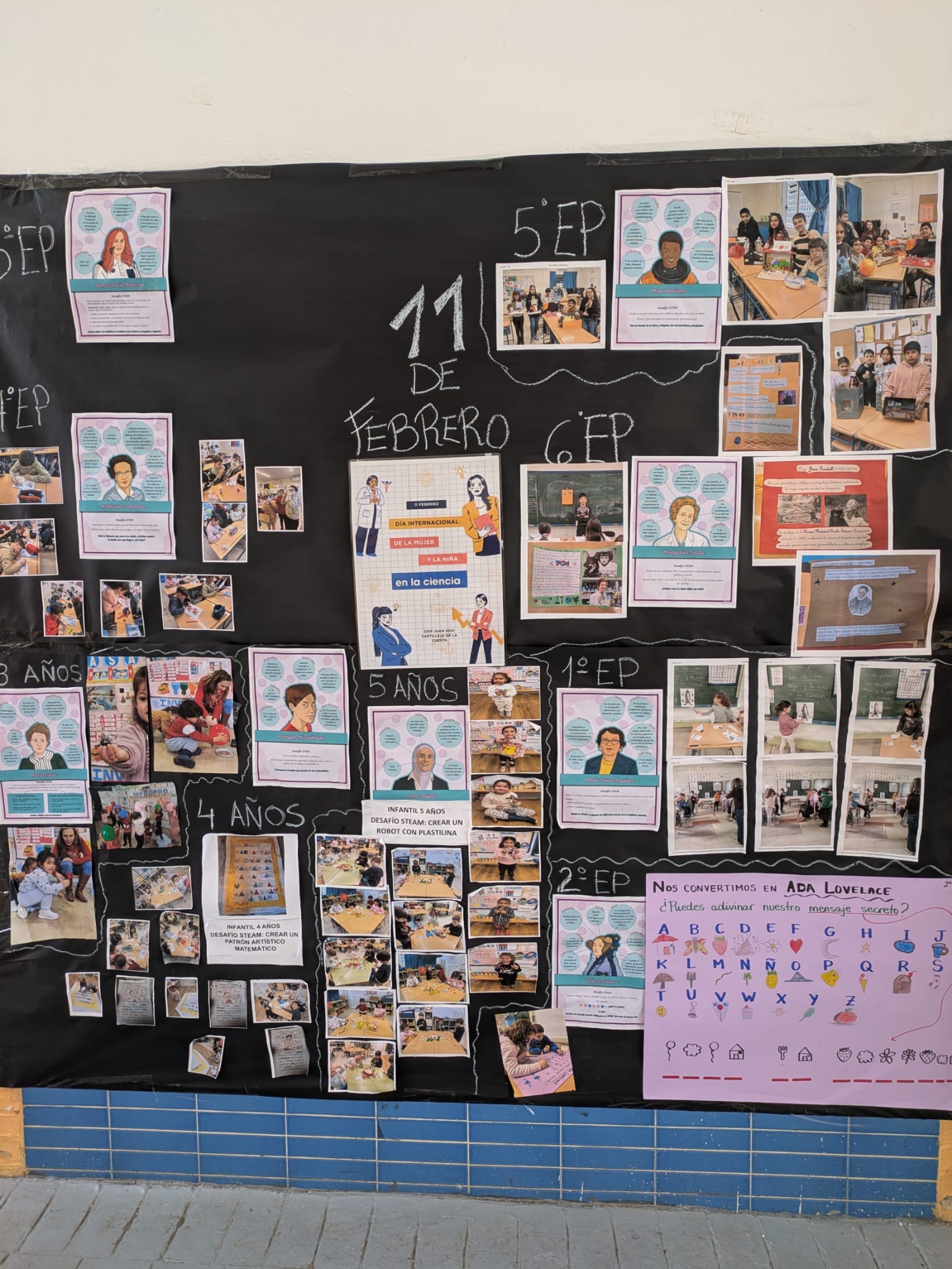 Con razón de este día tan importante, cada curso ha investigado a una científica relevante en la historia, y hemos realizado experimentos inspirados en ellas. Todos nuestros experimentos y creaciones las hemos expuesto en el mural de la entrada para que todos descubran a las demás científicas. Además, también se han expuesto los súper trabajos de otros cursos en nuestra biblioteca, creando nuestra propia exposición.
